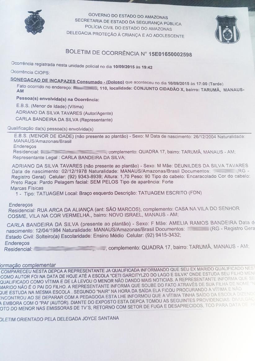 Um Boletim de Ocorrência foi registrado na Delegacia de Proteção à Criança e o Adolescente (Depca), e a mãe pede apoio de todos para encontrar o filho. Informações sobre o paradeiro de Estêvão Bandeira da Silva podem ser relatadas à mãe da criança por meio do número (92) 99105-2166.