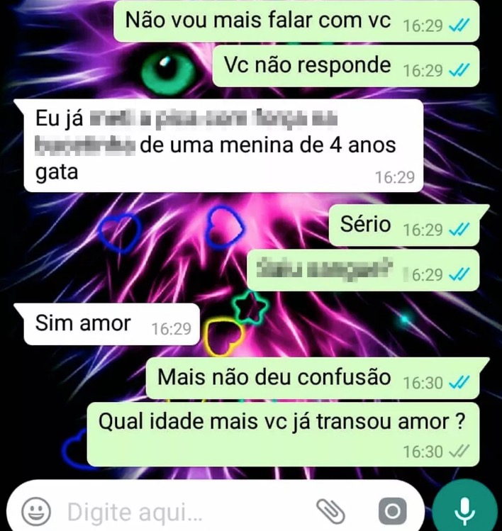 De acordo com o G1 BA, a SSP informou que o 1º contato foi feito através do facebook, onde foram trocados números de telefone. Após a criança desconfiar do caso, passou o celular para a mãe que começou a conversar com o suspeito e em diversas mensagens, o homem pedia fotos da menina sem roupa e revelou desejos eróticos. A SSP informou ainda que o suspeito disse ter mantido relação sexual com uma criança de 4 anos e enviou um vídeo em que se masturbava.