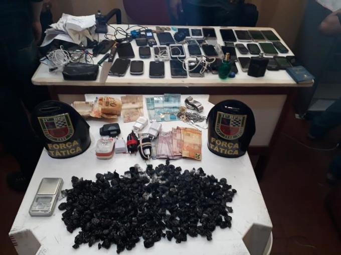 Antes da transferências dos presos, a polícia realizou uma varredura nas celas e apreendeu 31 aparelhos celulares, 269 trouxinhas de entorpecentes, um pendrive adaptado para celular, uma balança de precisão, cinco carregadores para celular e cadernos com anotações de dívidas de droga e a quantia de R$ 932,00 em espécie.