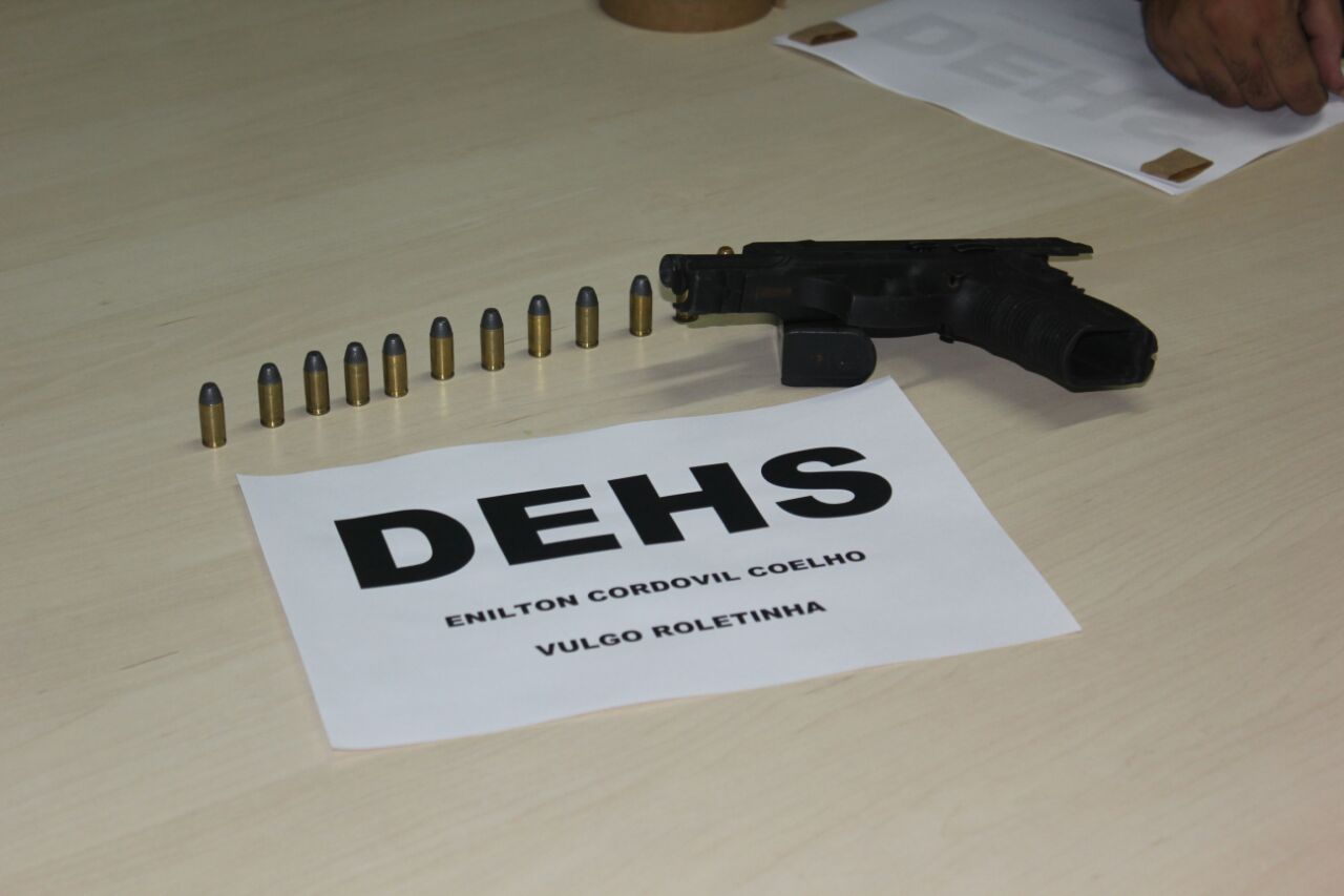 ROLETINHA foi flagranteado por porte ilegal de arma de fogo, tráfico de drogas, além de ter sido cumprido o mandado de prisão preventiva por homicídio, expedido pelo Dr. Anésio Rocha Pinheiro, do 2º Tribunal do Juri.