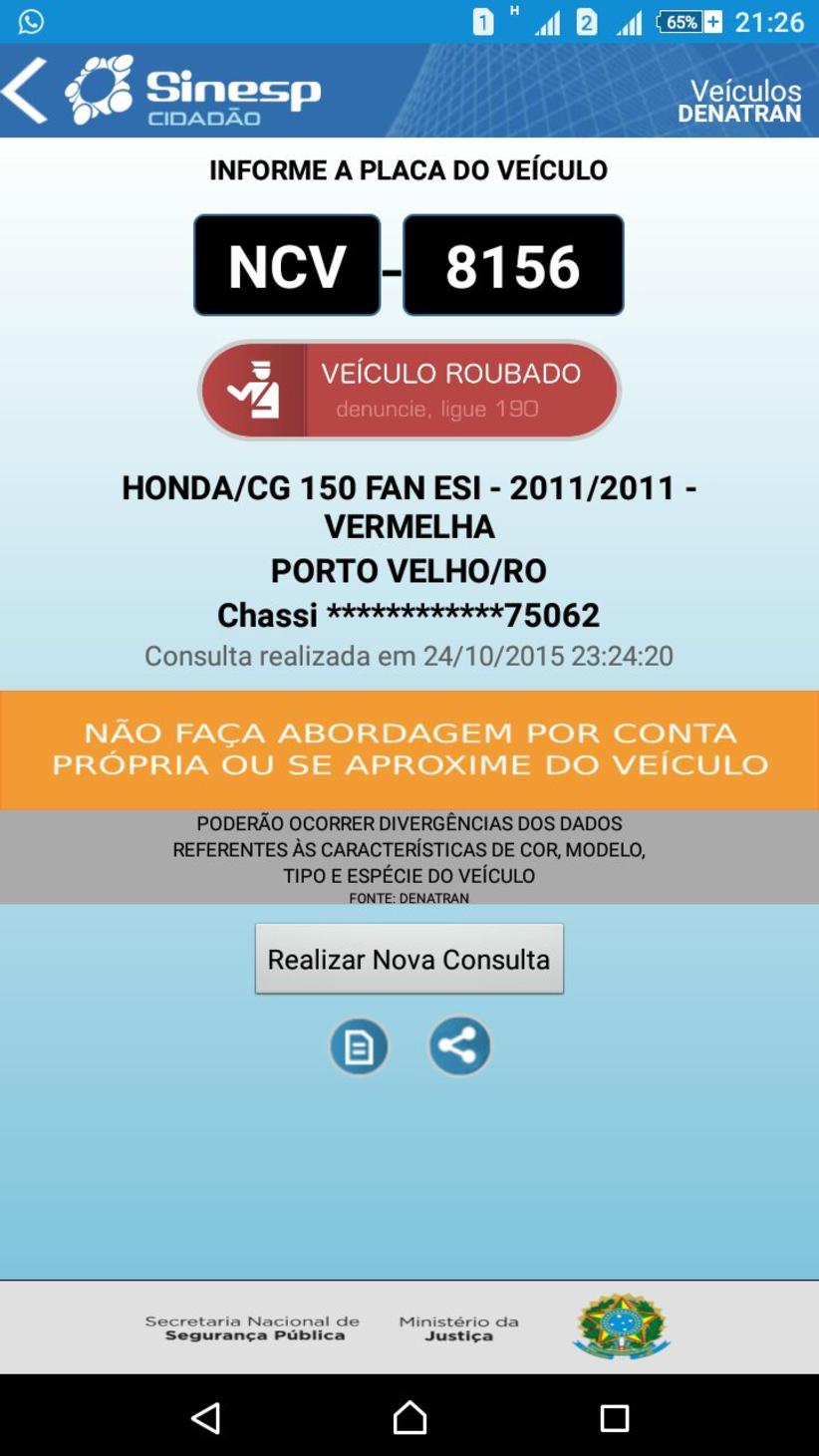 Uma equipe da Força Tática composta pelos soldados Ivan Mota, Rosana Correia e Sandro Dantas e comandada pelo cabo Rogens, fazia o policiamento da área quando notou uma motocicleta estacionada de forma irregular na pista. Assim que vistoriaram o veículo modelo Honda CG 150 Fan, de cor vermelha, verificaram que não havia placa. Pelo chassi na motocicleta conseguiram descobrir o número da placa, NCV-8156, que apontava restrição de roubo. A moto foi roubada de Porto Velho-RO.