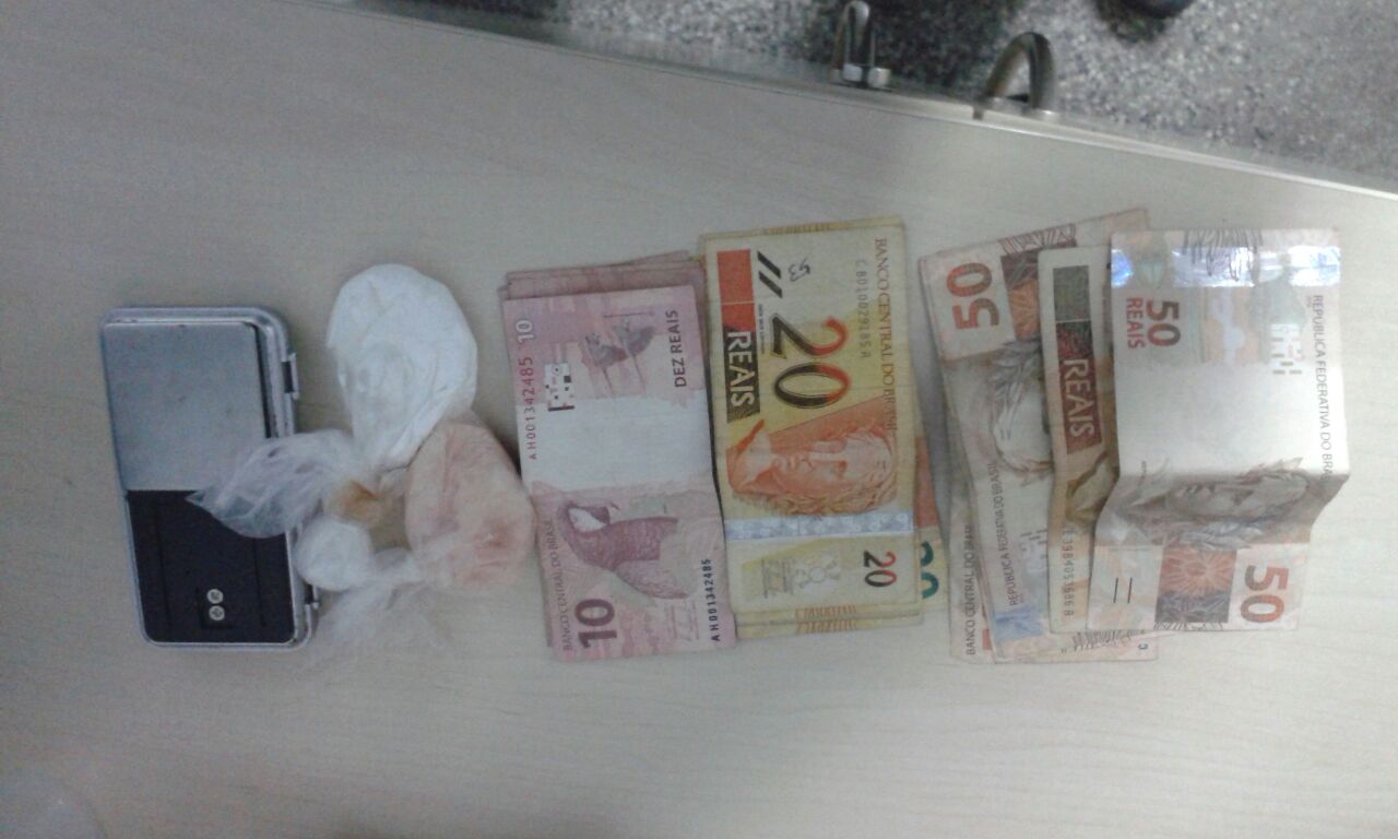 Com ela, a polícia apreendeu duas porções de substância com características de cocaína e pasta base. Além disso, foram recolhidos seis aparelhos celulares, uma balança de precisão, uma quantia em dinheiro no valor de R$ 450, e material para refino.