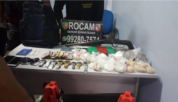Segundo a polícia militar, foi preendida uma grande quantidade de drogas, armas, celulares, relógios e coletes balísticos, além de dinheiro em real e dólar.