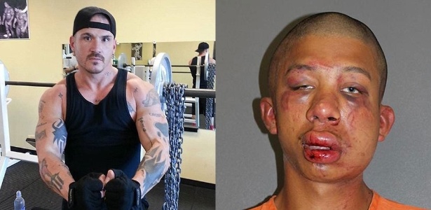 Jason Browning (esq.), 35, espancou o jovem de 18 anos Raymond Frolander (dir.) após ter flagrado uma tentativa de estupro contra o seu filho