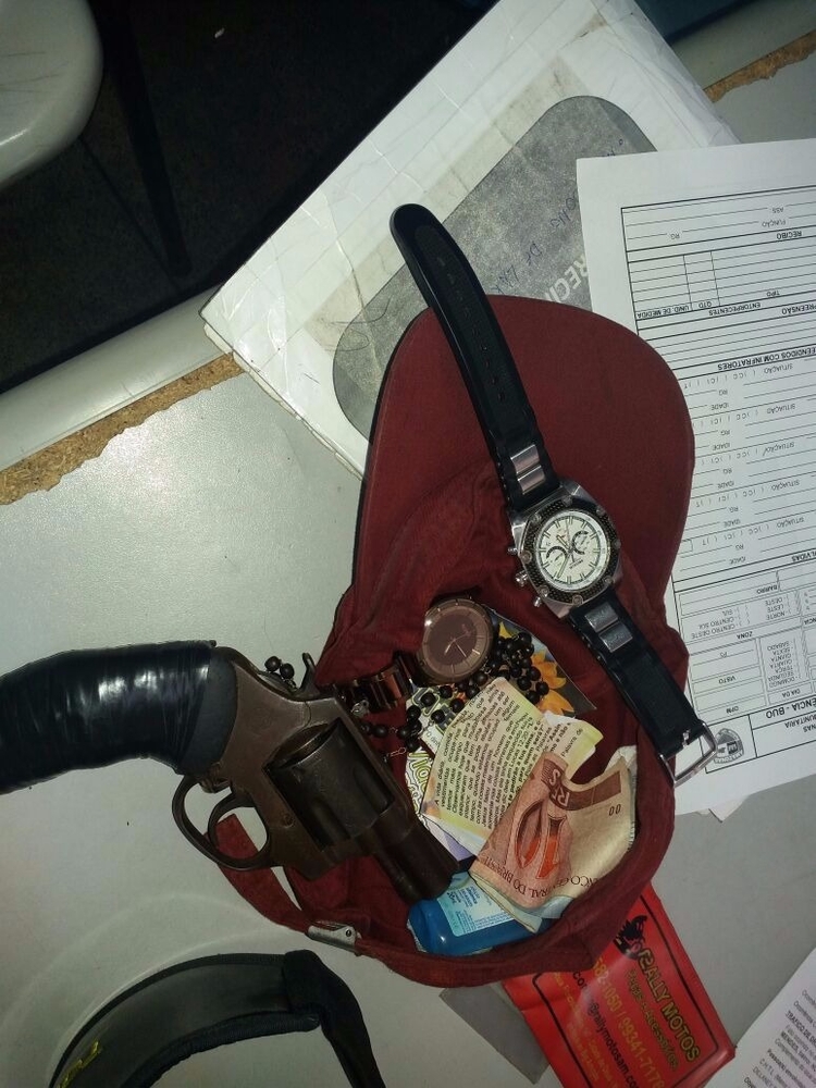 Eles foram cercados por populares que queriam agredi-los, porém, foram impedidos pelos PMs que ao abordá-los, constataram que um portava um revólver calibre 38 com numeração raspada, sem munições e um relógio de pulso.