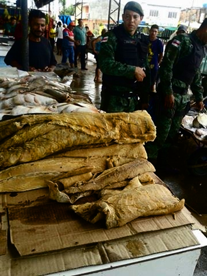 Equipe do Batalhão Ambiental, apreendeu, nesta quarta-feira, 28, no Distrito de Cacau Pirera, 220 kg de Pacu, 50 kg de Pirarucu, 06 kg de Surubim e 03 kg de Tambaqui. O pescado, segundo informação da polícia, era comercializado sem a documentação de origem no box 08 da feira popular daquele distrito. O proprietário do pescado se evadiu momentos antes da abordagem. Todo o material apreendido foi apresentado no 31° DIP do Iranduba.