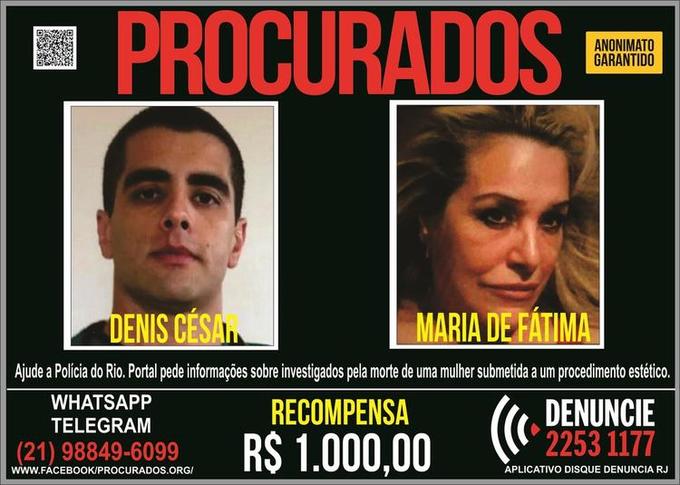 A Polícia do Rio de Janeiro decidiu oferecer uma recompensa de R$ 1 mil, para quem tiver informações que levem a localização do de Denis César Barros Furtado, 45, conhecido como “Dr.Bumbum”, e da mãe dele, Maria de Fátima Barros Furtado, 66 anos.