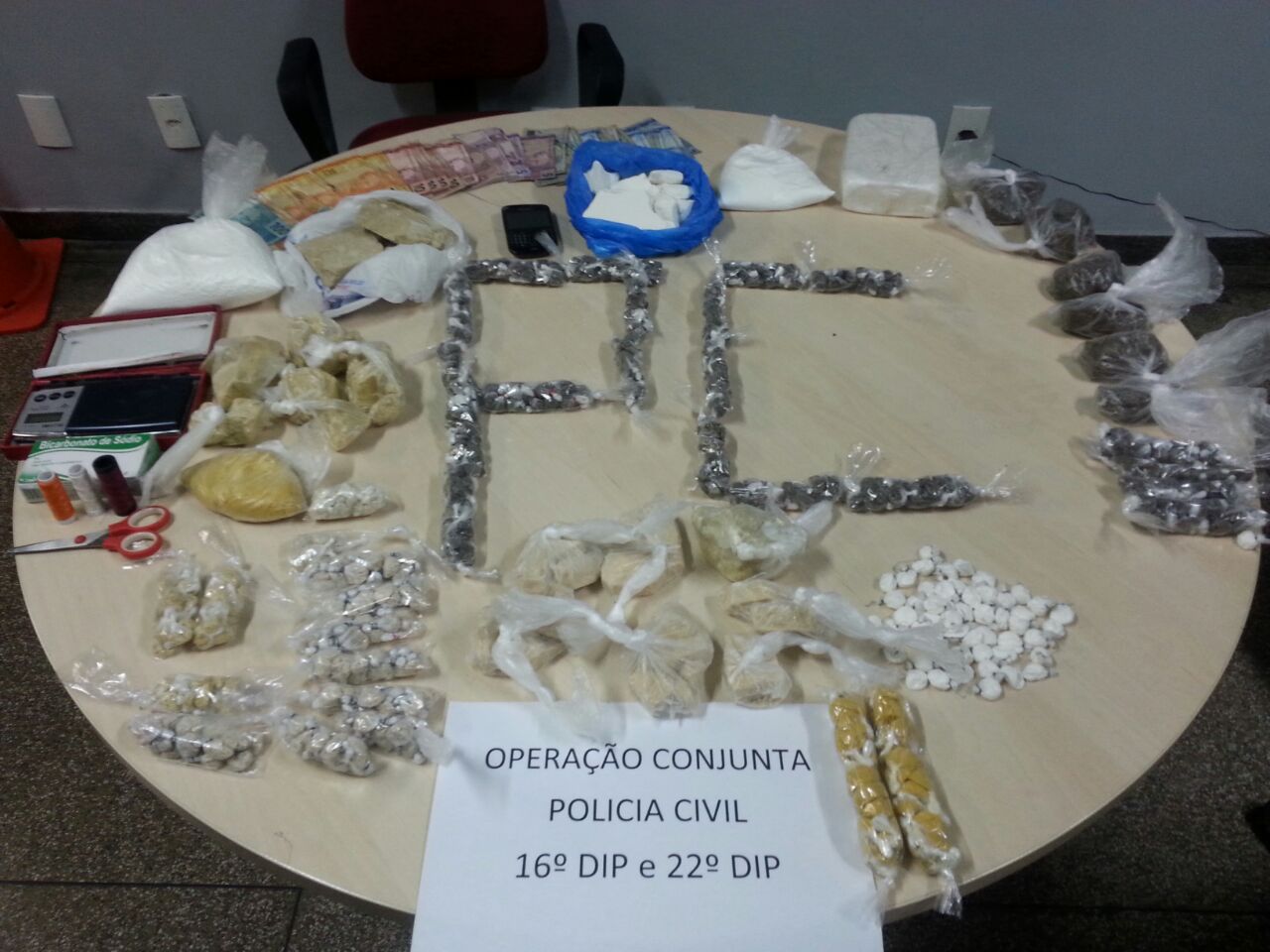 No interior do imóvel, foi apreendido R$ 500 em dinheiro, um tablete com aspecto de cocaína, seis porções grandes com características de cocaína, 295 trouxinhas com aparência de maconha, 53 porções semelhantes à cocaína, uma pedra grande aparentemente de oxi, 12 pedras pequenas da mesma substância, uma peça grande de droga, 30 trouxinhas parecidas com pasta base de cocaína e mais 198 trouxinhas supostamente da mesma substância.
