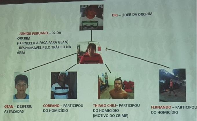 Segundo a Polícia Civil, além do trio outras três pessoa também estão envolvidas no crime são elas”Adriano Rolim da Silva, o Dri; Marco Aurélio de Moraes Pinheiro, o Junior Peruano, e Arlison Bentes da Silva, o Coreano. Fernando, Gean e Thiago confessaram o crime.