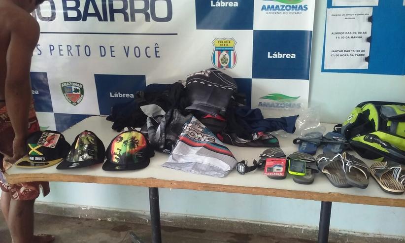 Os policiais militares da 4ª Companhia Independente da Polícia Militar (4ª CIPM) foram acionados nas primeiras horas da manhã e conseguiram levantar as informações necessárias para capturar o bando conhecido pela alcunha de “Escorpiões”. Eles estavam em uma residência abandonada no Bairro da Fonte. Com o grupo foram apreendidos: 16 bonés, três pares de tênis, facas e canivetes, seis pares de sandálias, 23 bermudas, uma calça comprida, 11 cuecas box, um notebook, cinco mochilas, 10 chips da Vivo, um mini game, 41 relógios, três cartelas de piercing, seis caixas de som, caixinhas de notebook, quatro óculos, duas caixas com rádio, um rádio, uma câmera, 75 cordões, cinco pen drives e nove celulares.