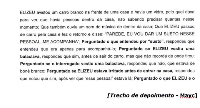 *Nesse momento, as informações são baseadas nos depoimentos prestados por PM Elizeu e Mayc
