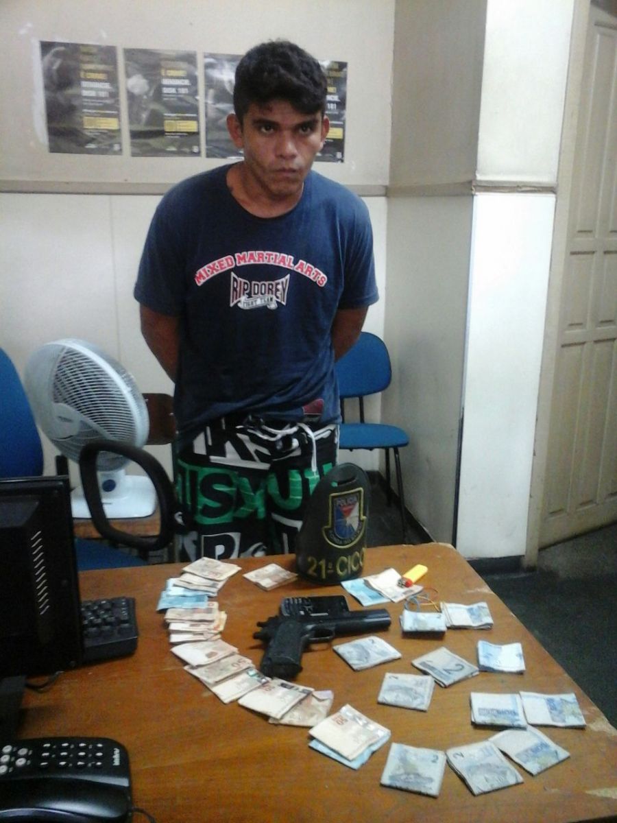 O terceiro assaltante, acabou acuado no estabelecimento fazendo todos de refém. O Ten. Wisley conduziu as negociações e, após 30 minutos, Marlon Araújo da Silva, 28, acabou se rendendo. Com ele foram apreendidos uma pistola 9mm (de uso restrito das Forças Armadas) com numeração raspada, um celular e a quantia de R$ 2.230,00.