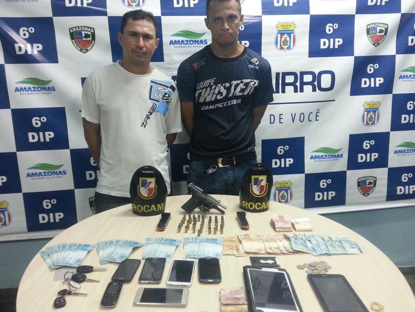 Assim que foram abordados pelos PMs, foram encontrados com Erick e Iago Luan dois carregadores de pistola 840 com 11 munições intactas em cada um e a quantia em dinheiro de R$ 157,00. Erick informou que venderia os carregadores para seu tio, José Carlos, pela quantia de R$ 600,00. Os militares foram até o endereço de José Carlos, na rua dos Pinheiros, bairro Jorge Teixeira II. Lá encontraram dentro de um guarda-roupa uma pistola 940 da Polícia Militar do Amazonas e a importância de R$ 5.600,00.