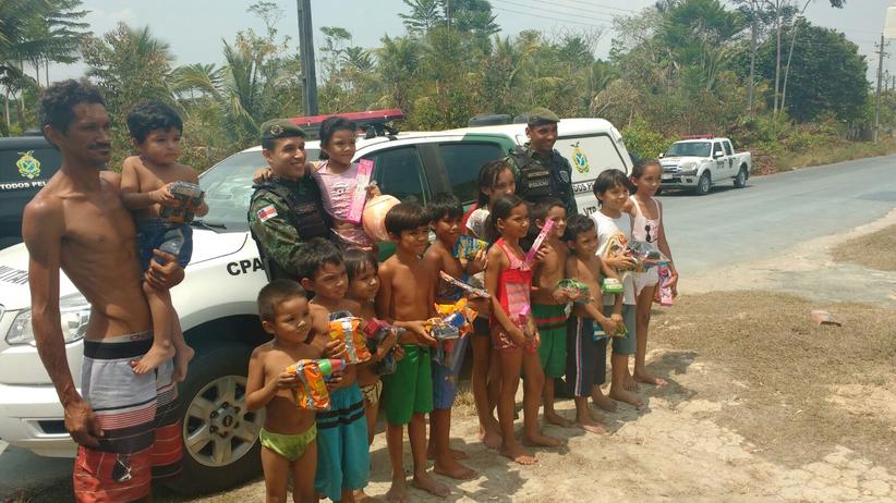 Pelo menos 150 crianças foram presenteadas com a iniciativa dos militares na comunidade.