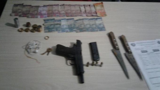 A dupla foi presa pela PM e conduzida ao 6º Distrito Integrado de Polícia para os procedimentos cabíveis. Com eles foram encontrados dinheiro, duas facas e uma arma calibre.