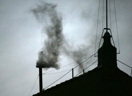 Fumaça negra sobe da Capela Sistina em abril de 2005 durante eleição do papa Bento XVI