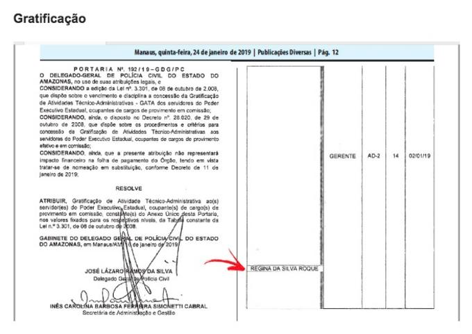 O delegado-geral da Polícia Civil do Amazonas, José Lázaro Ramos da Silva, nomeou a sobrinha, a psicóloga Regina da Silva Roque, para o cargo de gerente da Delegacia Geral, com uma remuneração mensal de R$ de 6,2 mil, para trabalhar como assessora, no gabinete dele. Regina é filha da irmã de Lázaro, Elvira de Fátima da Silva Roque.