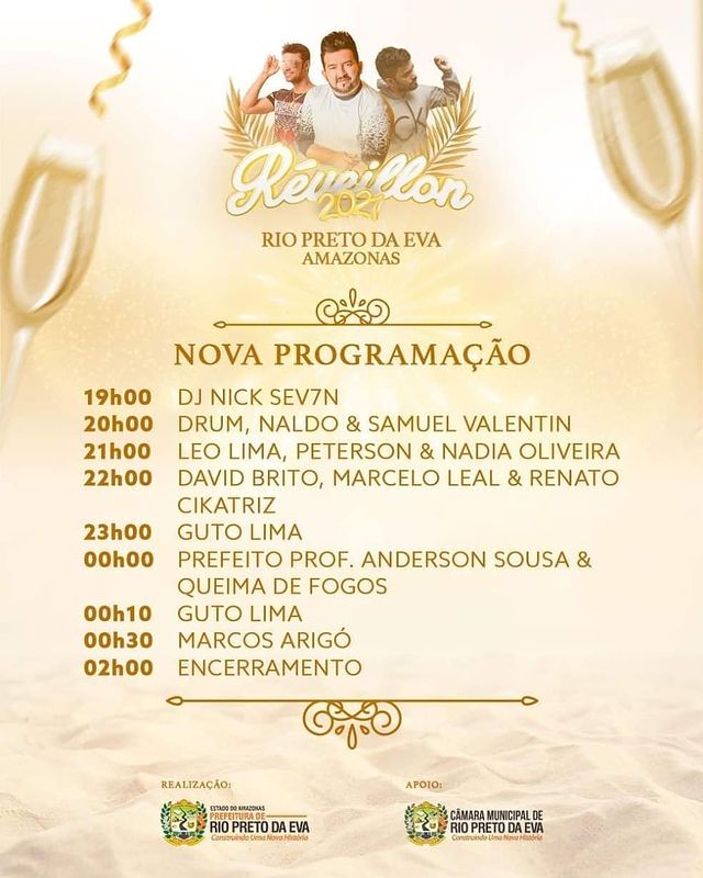 O prefeito de Rio Preto da Eva (a 58 quilômetros de Manaus), Anderson Sousa (PP) divulgou em suas redes sociais a programação de Réveillon do município, na contramão do decreto governamental que proíbe eventos desse tipo.