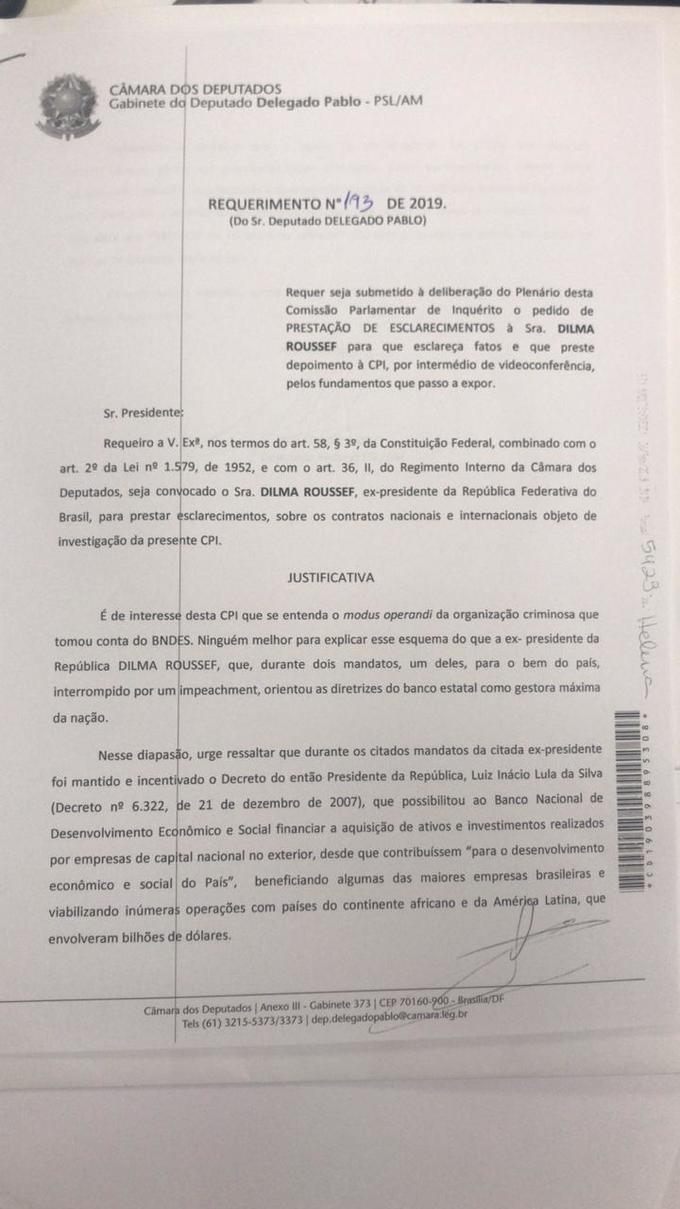 O pedido de prestação de esclarecimentos foi protocolado nesta terça-feira (06), na Câmara dos Deputados, pelo parlamentar do Amazonas, Delegado Pablo (PSL-AM). O convite aos dois ex presidentes será analisado na próxima reunião da CPI, que acontece nesta quarta-feira (07).