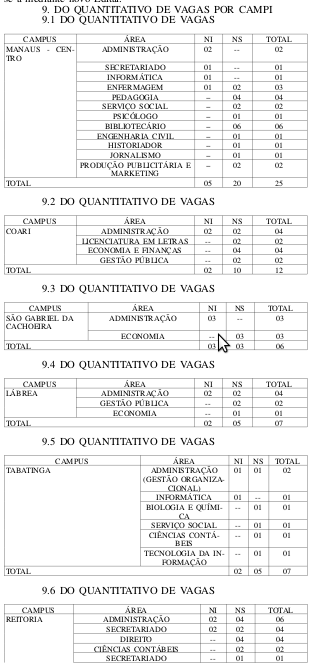 Vagas de estagiários para a Capital e Interior dos cursos de Nível Médio: Técnico em Administração, Técnico de Informática, Técnico em Secretariado, Técnico em Enfermagem, Técnico em Eletrônica, Mecatrônica ou Automação; Nível Superior: Administração, Biblioteconomia, Enfermagem, Gestão Organizacional, Gestão Pública, Ciências Econômicas, Licenciatura em Letras, Engenharia Elétrica, Engenharia Civil, História (Historiador) Pedagogia, Jornalismo, Informática - Infraestrutura e Redes, Desenvolvimento de Sistemas, Tecnólogo da Informação, Comunicação Social, Secretariado, Engenharia Civil, Ciências Contábeis, Direito, Serviço Social, Psicologia, Economia e Finanças, Produção Publicitária e Marketing, Ciências Químicas e Biológicas.