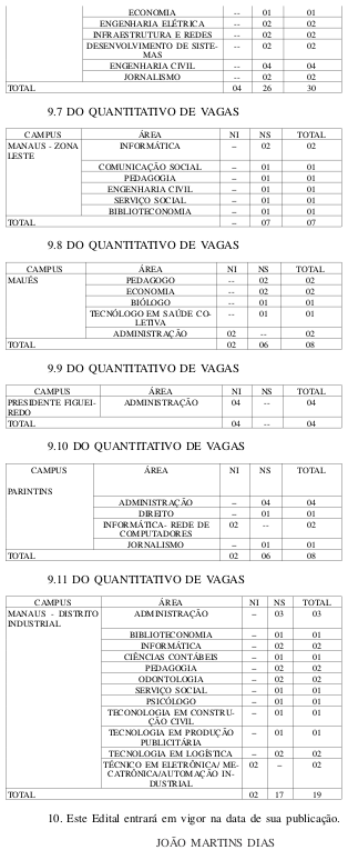 O Instituto Federal de Educação do Amazonas abriu no dia 14 e estende até 31 de janeiro, vagas para estagiários através de Processo Seletivo Simplificado para os Campi Manaus-Centro, Manaus - Zona Leste, Manaus - Distrito Industrial, Coari, Lábrea, Maués, Parintins, Presidente Figueiredo, São Gabriel, e Tabatinga . Poderão participar do processo seletivo somente estudantes regularmente matriculados e que estejam frequentando o ensino regular em instituições de educação superior, e educação profissional e de ensino médio.