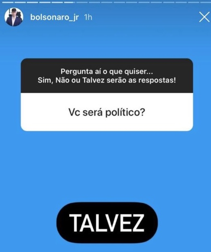 O jovem foi questionado sobre a possibilidade por um seguidor do Instagram: “Você será político?”, perguntou um seguidor. “Talvez”, respondeu o ’04’.