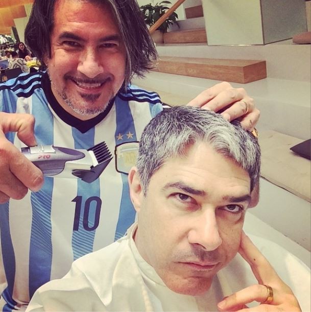 william Bonner resolveu dar uma aparada nos seus fios grisalhos na manhã deste sábado, 26, e quando viu que o seu cabeleireiro estava usando uma camisa da Argentina, resolveu fazer uma brincadeira com o profissional na web.