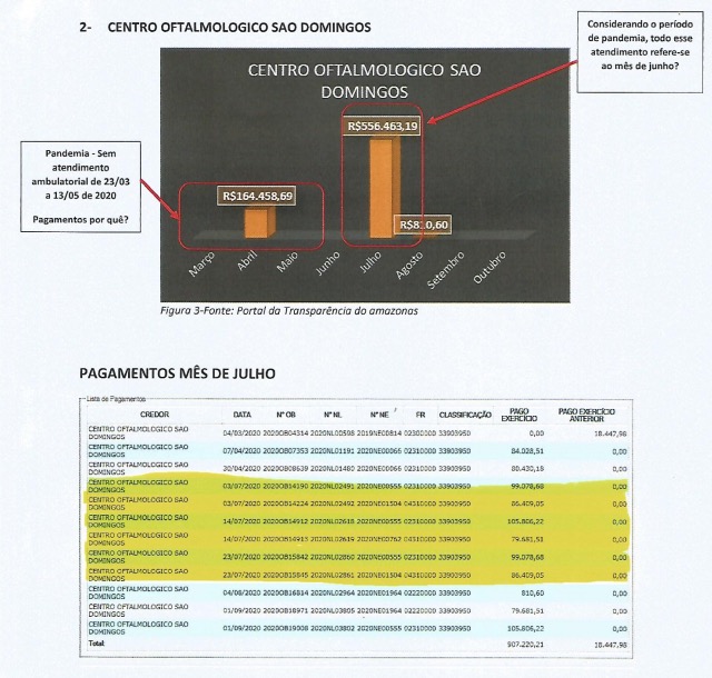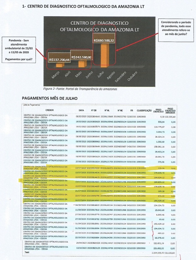 Manaus/AM - Dados disponíveis no Portal da Transparência do Amazonas mostram que clínicas oftalmológicas receberam dinheiro do Governo do Estado mesmo durante a suspensão dos serviços ambulatoriais, conforme decretos publicados pelo Executivo no período de março a maio deste ano.