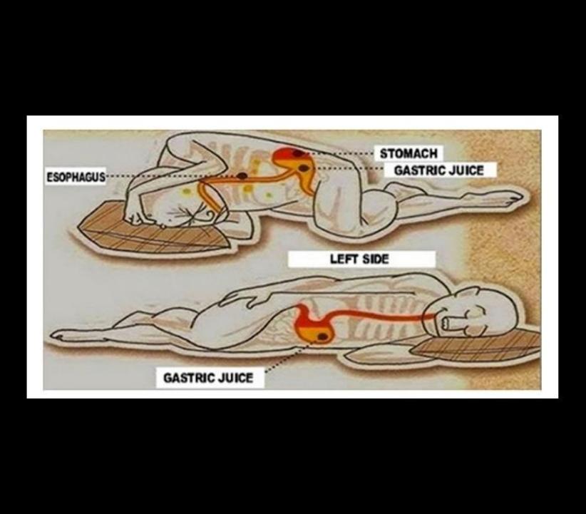 Mas o mesmo não acontece se dormir para o lado direito, uma vez que o estômago não tem qualquer curva do lado direito o suco gástrico não cabe todo e por causa da gravidade acaba por se armazenar também no esófago. O que não é nada bom para o seu sistema digestivo e pode provocar a azia matinal.