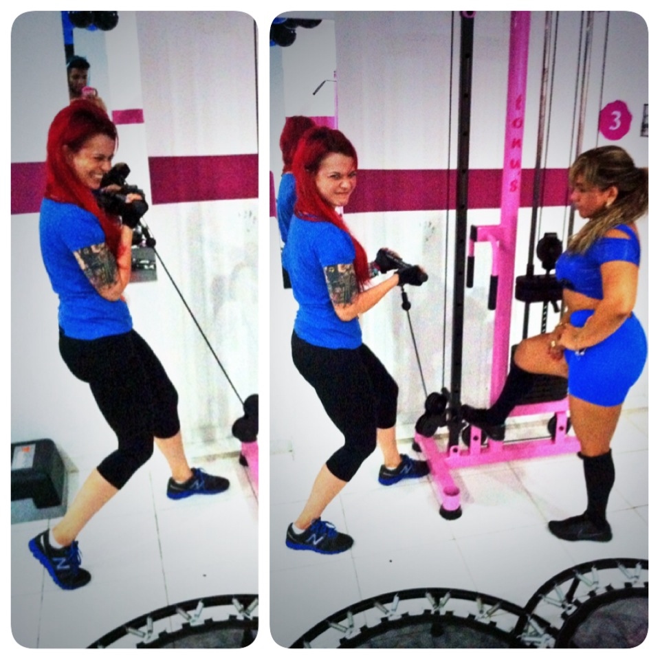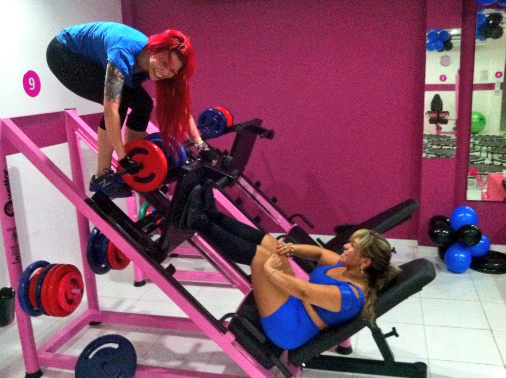 Nas fotos que ilustram a coluna de hoje, estou pegando pesado com a ajuda da Mara-vilha e nós, sócias/toniquetes – como somos carinhosamente chamadas pelo staff, temos a instrução de ótimos educadores físicos, também. No final de cada aula um chá de pêssego para desintoxicar nos aguarda. Eu amo tudo isso e estou surpresa com a minha evolução. Quem diria que um dia eu puxaria ferro rodeada de coisas pink!!!!!!!!!!!!!!!!!