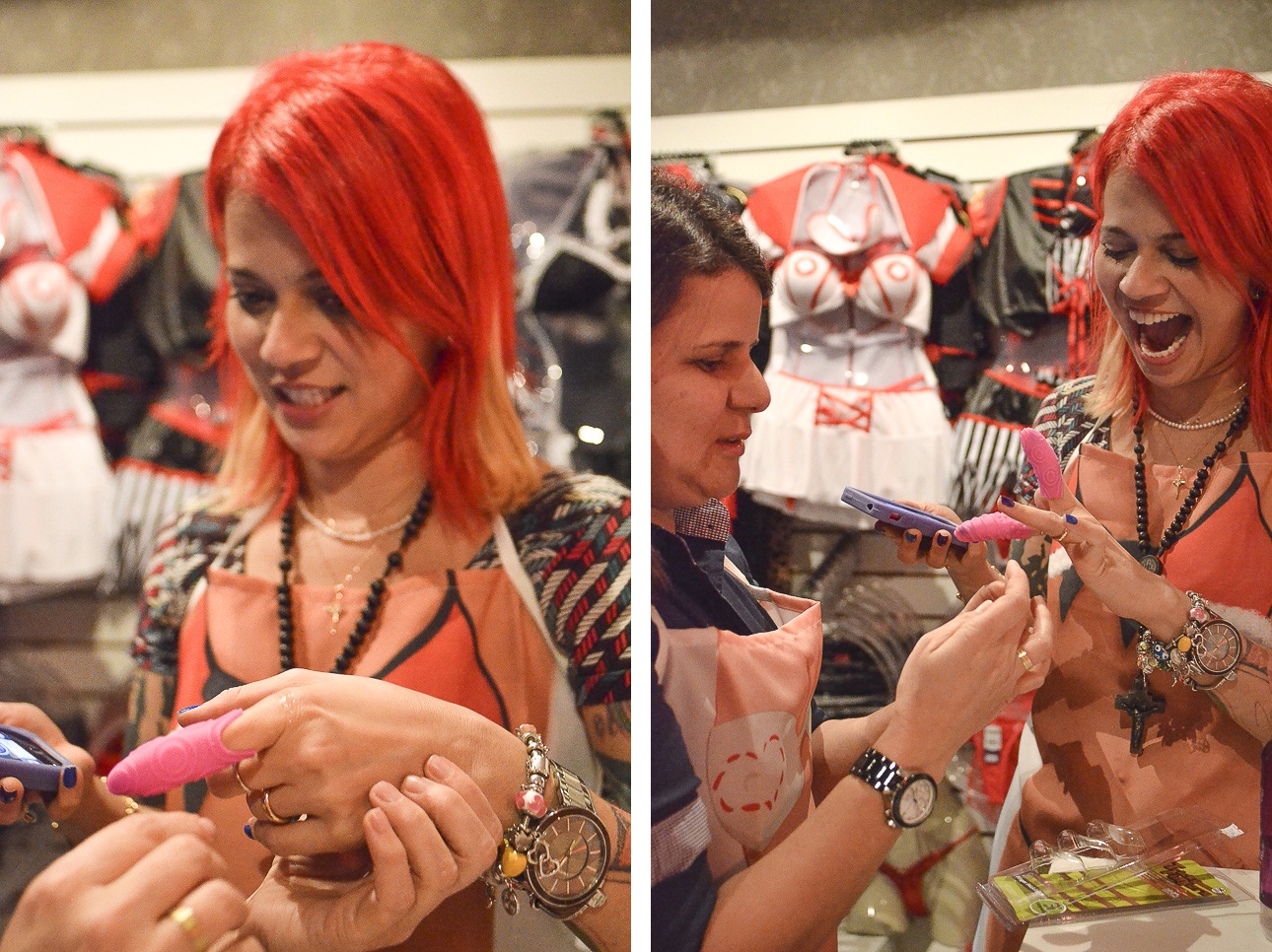 Assim que iniciamos a loja, 6-7 anos atrás, era uma novidade, claro. Mas 70% do público é feminino, sexshop é uma loja para pessoas se divertirem, literalmente. Eu digo que é uma pitada a mais, as mulheres comandam esse mercado.