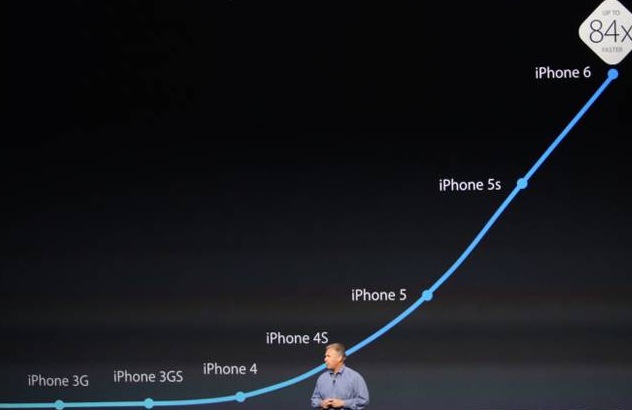 Para mostrar o quão vantajoso é o novo iPhone, se destacou o processador, que conforme um dos slides demonstrativos mostra um aumento de 84x a velocidade do primeiro dispositivo lançado pela gigante da maçã.
