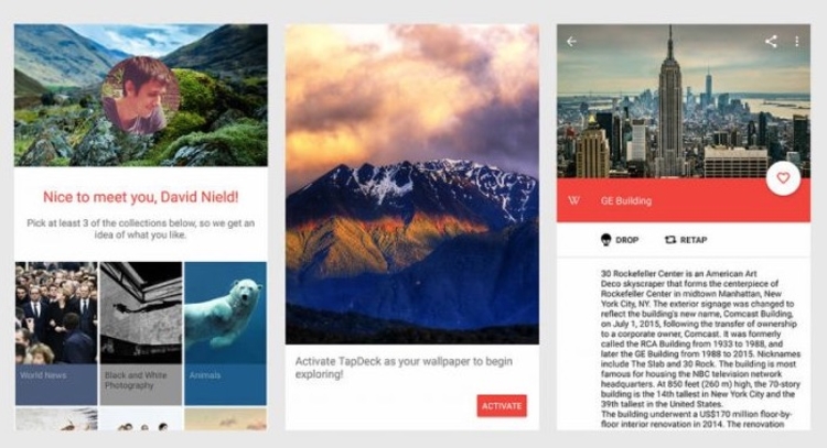 Disponível gratuitamente no Google Play, o TapDeck coloca imagens sensacionais de fundo no seu smartphones baseadas em curtidas no Facebook ou provenientes de serviços como Reddit, Flickr e Wikipédia, informa o Gizmodo Brasil.