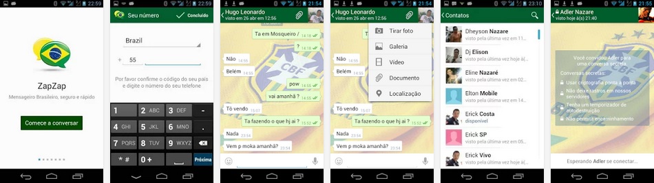 Um grupo de brasileiros criou um aplicativo para bater de frente com nosso querido WhatsApp. É o 'Zap Zap'! O aplicativo servirá para atrair toda a galera viciada no aplicativo "original". A interface do Zap Zap é inspirada nitidamente no 'Whats', mas conta com funções que diferenciam os dois como o envio de mensagens secretas que se autodestroem e a possibilidade de compartilhar arquivos sem limite de tamanho.