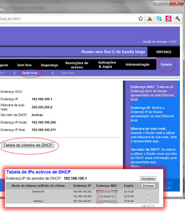 Na tabela estão listados os dispositivos conectados à rede. Se você tem dois computadores em casa e encontrou cinco na lista, é provável que sua Internet esteja sendo roubada.