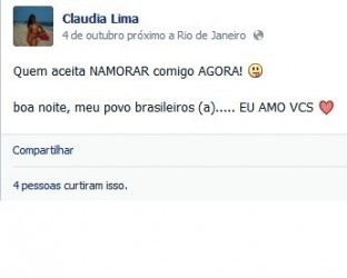 Cláudia Marinho de Lima, de 18 anos, foi encontrada morta com marcas de estrangulamento em um terreno baldio em Campo Grande, Zona Oeste do Rio, na tarde da última segunda-feira. Em seu perfil no Facebook, a vítima dizia que queria um namorado e, na semana passada, fez duas postagens com este intuito.