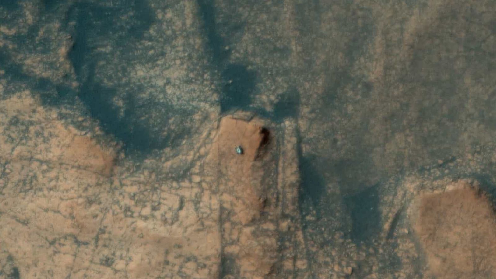A fotografia foi tirada pela sonda Mars Reconnaissance Orbiter enquanto sobrevoava o rover Curiosity, a quase 290 km de distância. O rover está explorando o Mont Mercou atualmente, sendo uma área bem isolada.