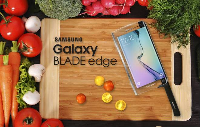 A Samsung anunciou a Galaxy Blade Edge, a primeira faca inteligente do mundo. A faca permitiria cortar até 50% mais rápido do que as concorrentes e viria com uma tela de 5.1 polegadas AMOLED e um sistema que encolheria a lâmina assim que encostasse na pele humana. O dispositivo ainda permitiria atender a ligações enquanto cozinha.