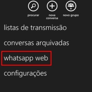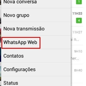 2. Algumas opções aparecerão, clique em whatsapp web.