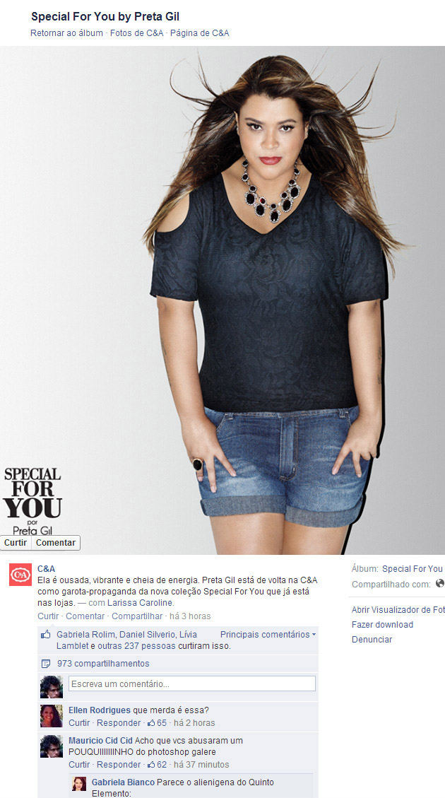 A modelo (ou melhor: a vítima) é nada mais nada menos que Preta Gil. Veja a imagem original: