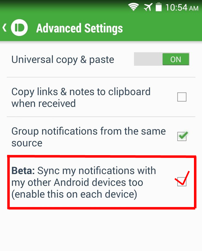 Você também vai precisar baixar o app em seu celular (Android ou iOS). Para visualizar as mensagens do WhatsApp, você terá que entrar nas configurações avançadas do Pushbullet (no celular) e marcar a opção "Beta: Sincronizar minhas notificações com meus outros dispositivos também" (veja imagem).