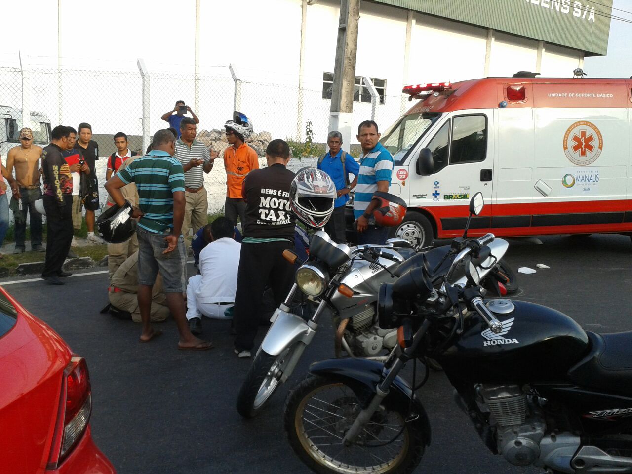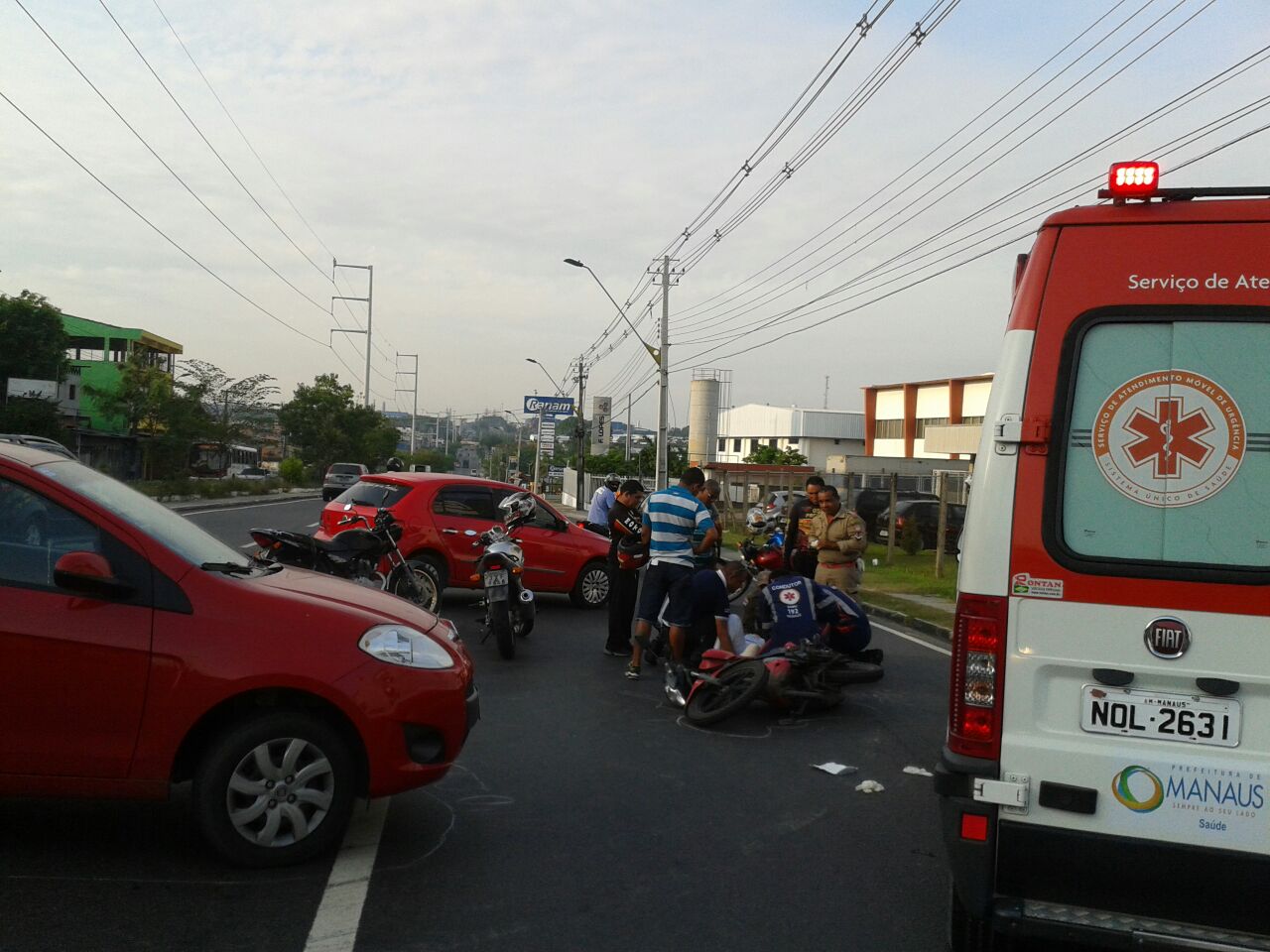 MANAUS - Um acidente envolvendo uma moto e um carro na manhã desta sexta-feira (15) deixou o trânsito lento na avenida Autaz Mirim, no Armando Mendes.