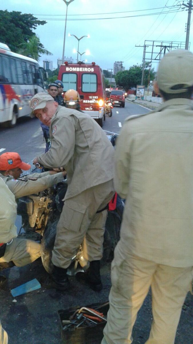 Manaus/AM - Acidente ocorrido por volta das 5h30 desta sexta-feira, 9, deixou um homem ferido e preso às ferragens do veículo. Foi necessária a intervenção dos bombeiros para retirá-lo.