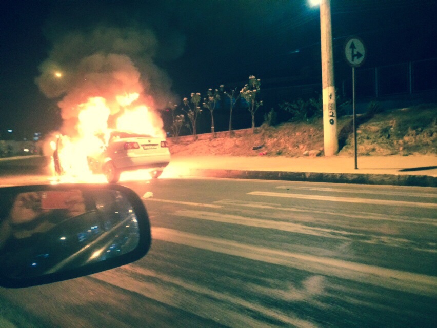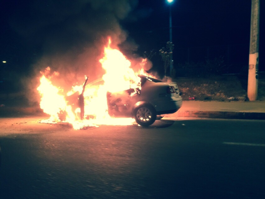 Vídeo mostra carro do ano em chamas na Avenida das Torres