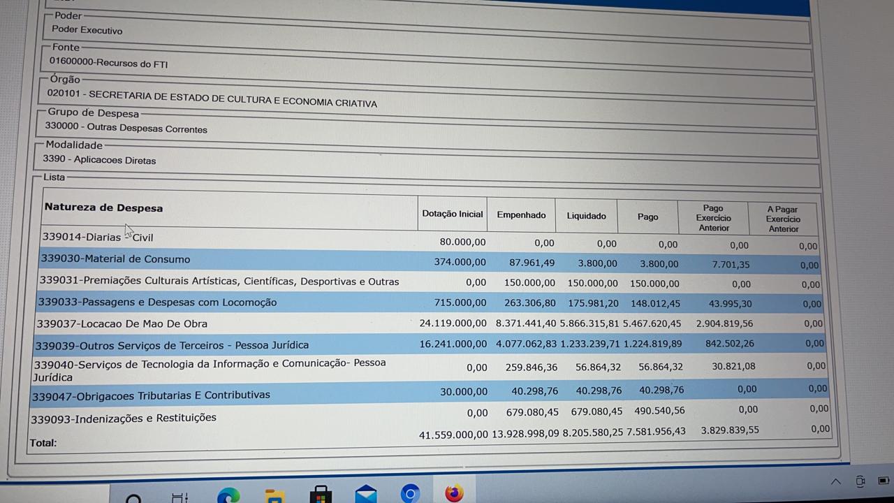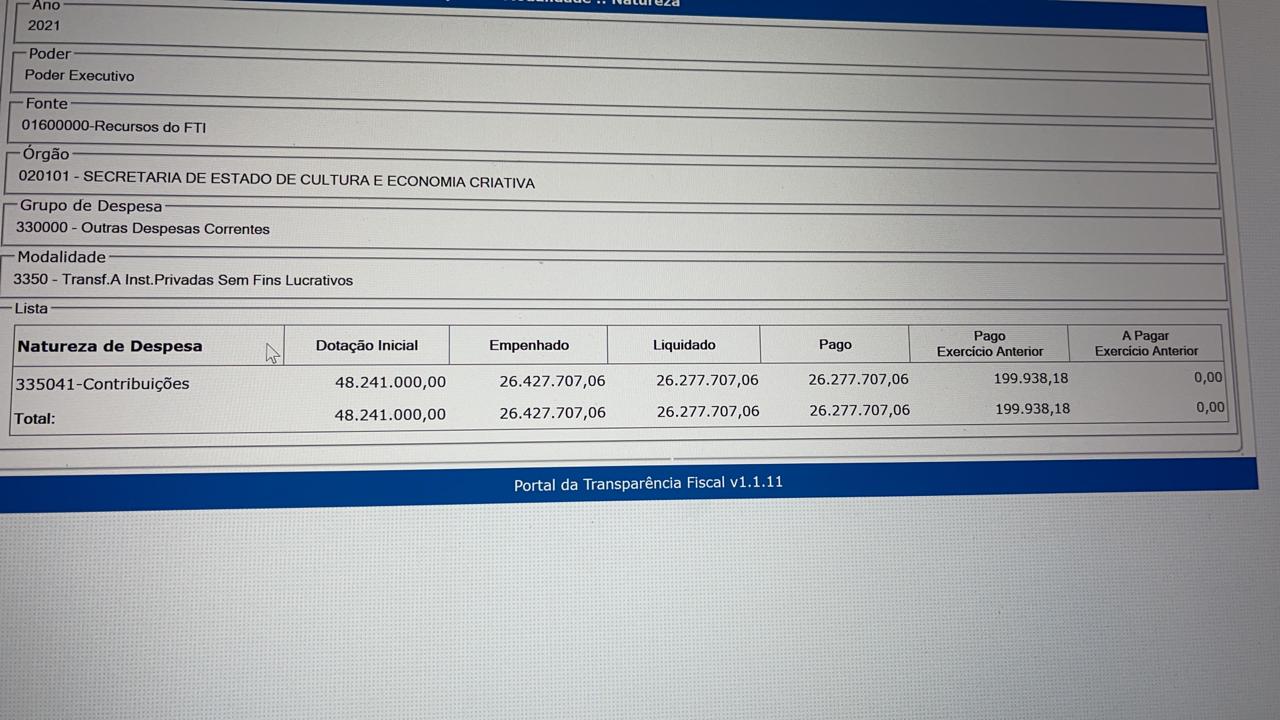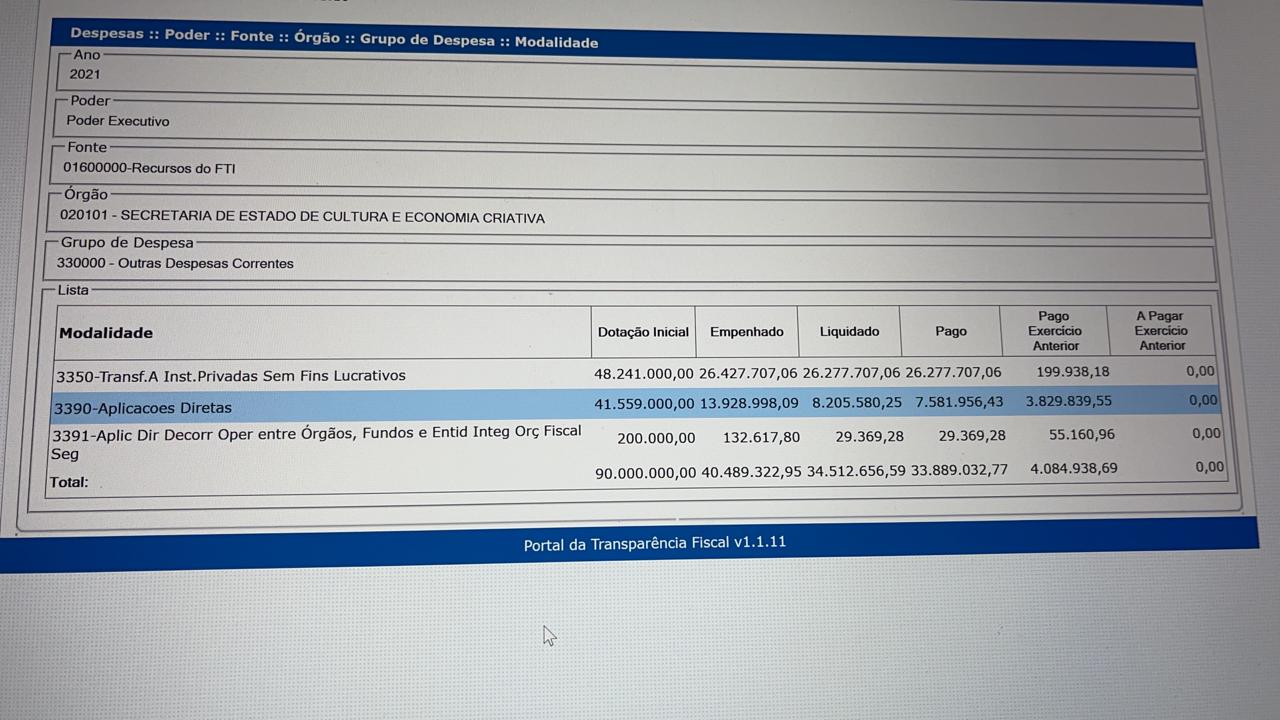 Então, vejamos onde grande parte destes valores foram aplicados pelo governo do Estado: Secretaria de Estado de Administração Penitenciária R$ 156.675.480,35; Secretaria de Estado de Segurança Pública R$ 68.625.906,30; Secretaria de Estado de Cultura e Economia Criativa R$ 40.773.785,26; Fundo Estadual de Assistência Social R$ 39.146.825,50 entre outras secretarias e agencias.