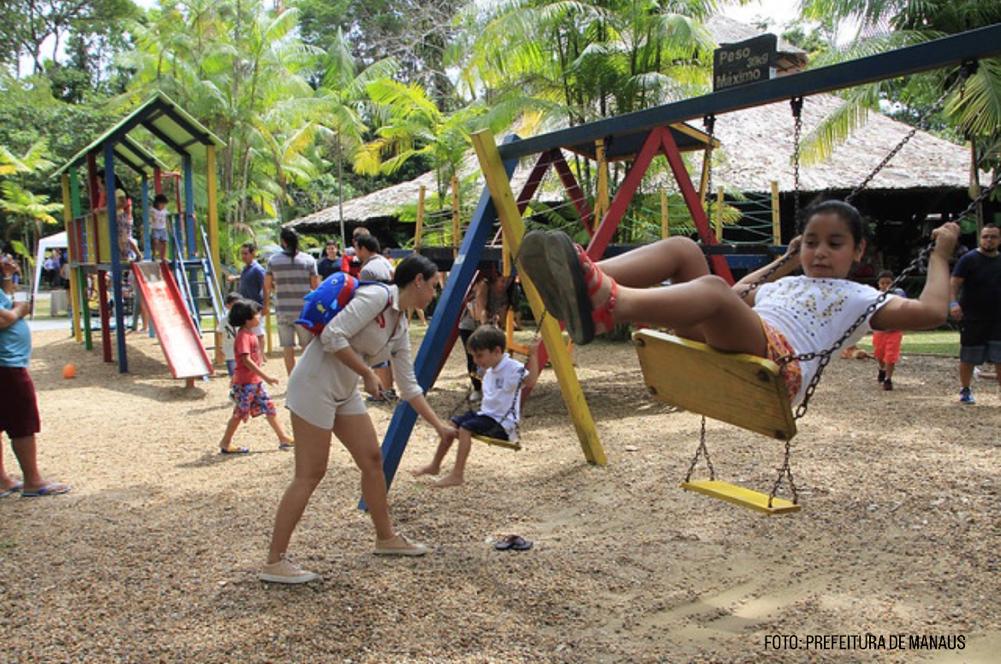 Lá, encontramos muito “verde”, várias árvores nativas, espaços para trilhas (por sinal, bem sinalizadas) e quando damos sorte, ao percorrermos o parque, podemos até mesmo avistar alguns animais como pacas, preguiças e algumas espécies de primatas, como o sauim-de-coleira. É a natureza pulsando na Zona Centro-Sul de Manaus, uma área residencial e comercial da cidade.