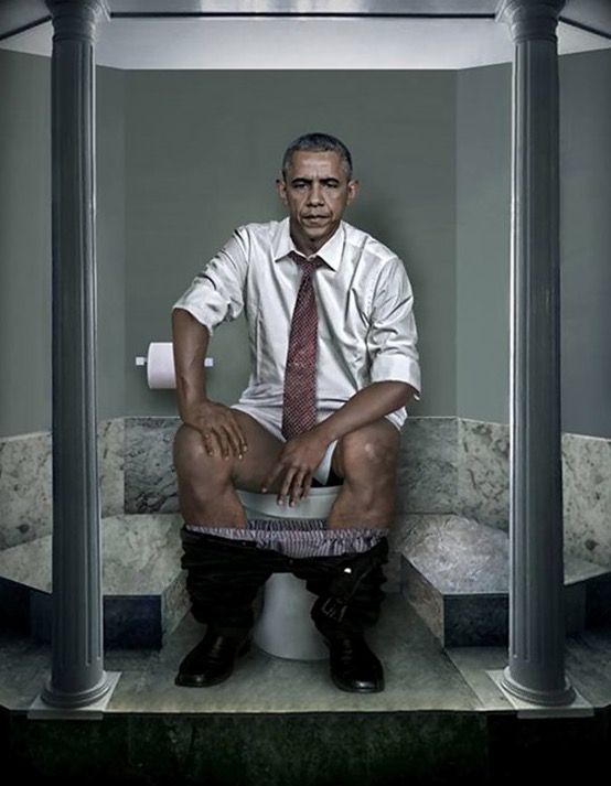 Em obras de arte, ela recria grandes líderes mundiais neste momento em que todo mundo sente uma emoção profunda, em que o resultado bate na água e água bate na b... Veja: