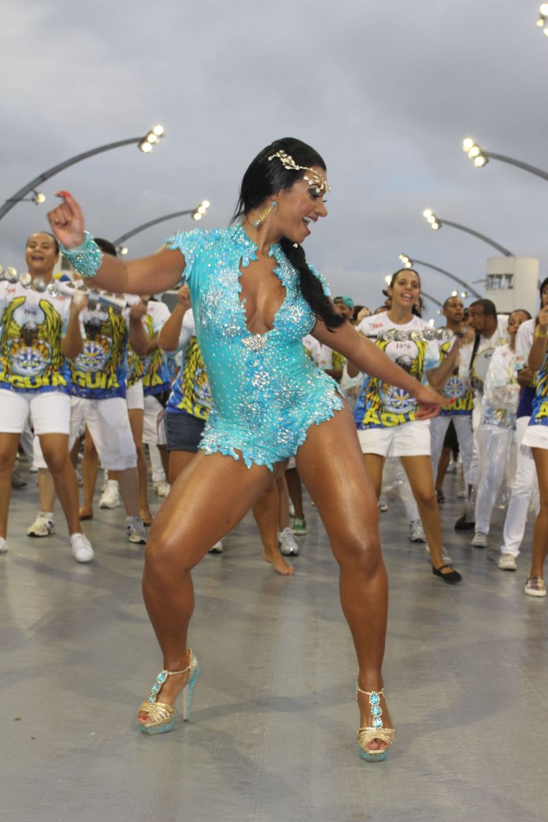 A atriz Cinthia Santos, que é madrinha da escola de samba Águia de Ouro, deu um show a parte no último ensaio técnico geral da agremiação Paulistana, ontem (15) no sambódromo do Anhembi.