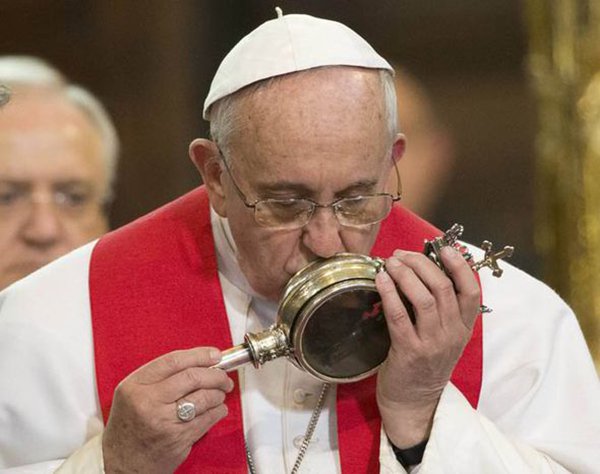 No dia 21 de marco de 2015 foi a primeira vez que o sangue tinha se tornado liquefeito na presença papal desde 1848, quando o fato ocorreu na frente do Papa Pio IX.