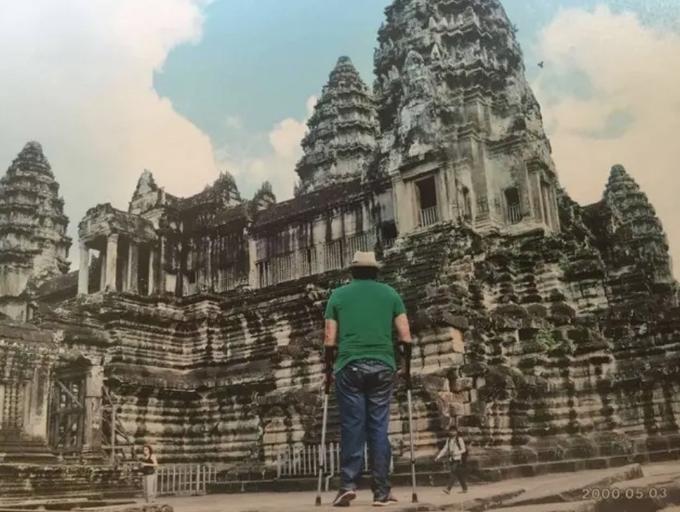 Luiz Thadeu em Camboja. Após o acidente, o nordestino ficou com uma perna maior que a outra e não pode andar mais de 100 metros sem muletas para não sobrecarregar essa parte do corpo. Foto: Arquivo pessoal